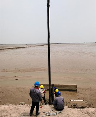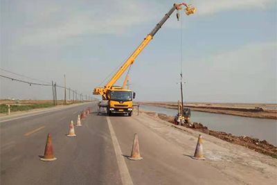 電力公司領(lǐng)導(dǎo)班子對(duì)恢復(fù)工程高度重視,因原路由被徹底毀壞,常規(guī)線(xiàn)路架設(shè)方式不適用恢復(fù)工程。在多方協(xié)調(diào),確定了線(xiàn)路路由后,經(jīng)過(guò)多次現(xiàn)場(chǎng)勘查,集思廣益,反復(fù)研究,最終確定了施工方案,決定創(chuàng)造性地采用地樁連接固定的方式豎立電桿。5月13日,在完成前期測(cè)量、定位、材料設(shè)備等準(zhǔn)備工作后,工程正式啟動(dòng)。電力公司工程部職工按照施工方案,在多機(jī)械的配合下,克服環(huán)境惡劣、線(xiàn)路長(zhǎng)等不利因素,于5月20日,完成了電桿豎立工作。