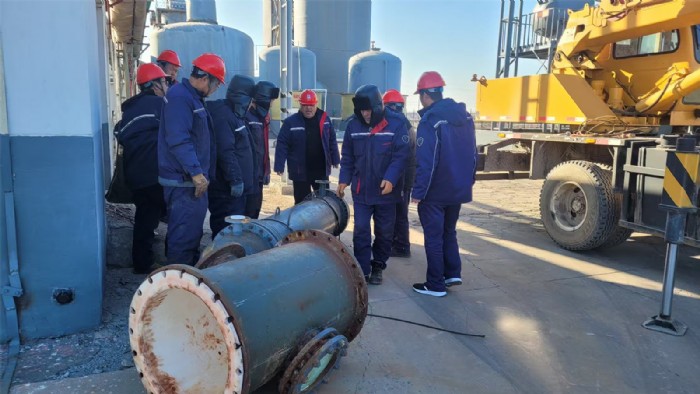 本次設(shè)備設(shè)施年度檢維修作業(yè)自2024年12月16日啟動(dòng),歷經(jīng)20余天。此次維修作業(yè)中,冷凝器更換面臨諸多挑戰(zhàn)。設(shè)備拆除難度大、設(shè)備體積重、安裝空間狹窄,對(duì)施工精度要求極高。但溴素二廠技術(shù)人員憑借豐富經(jīng)驗(yàn)和專業(yè)技能,精心制定施工方案,嚴(yán)格把控每一個(gè)環(huán)節(jié),確保了拆除與安裝工作安全、有序進(jìn)行。同時(shí),安全部門全程監(jiān)督,落實(shí)各項(xiàng)安全措施,為檢維修作業(yè)順利推進(jìn)保駕護(hù)航。