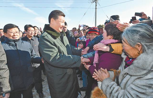 2017年1月24日,中共中央總書記、國家主席、中央軍委主席習(xí)近平來到河北省張家口市,看望慰問基層干部群眾,考察脫貧攻堅(jiān)工作。這是習(xí)近平在張北縣小二臺(tái)鎮(zhèn)德勝村看望慰問村民,向鄉(xiāng)親們拜年。(資料片)新華社發(fā)