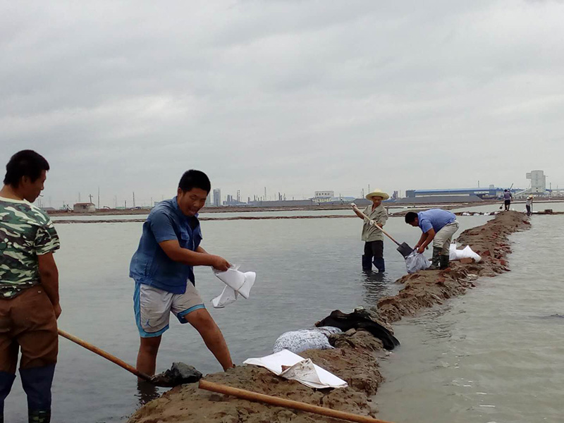 災(zāi)情發(fā)生后,公司立即啟動(dòng)防汛應(yīng)急預(yù)案,迅速組織干部職工開展生產(chǎn)自救,積極做好救災(zāi)抗災(zāi)工作,確保公司財(cái)產(chǎn)、人員安全。整個(gè)防汛抗災(zāi)過程中,一線干部職工發(fā)揚(yáng)“戰(zhàn)天斗地”的滄鹽精神,眾志成城、嚴(yán)防死守、抗災(zāi)搶險(xiǎn),采取外堵(堵住外圍水不進(jìn)場區(qū))、下疏(重新開通入海泄洪口3處)、內(nèi)保(保住駁鹽溝、導(dǎo)水路護(hù)灘埝不決口)的有效措施,先后排除各類險(xiǎn)情245處,最終奪取了抗災(zāi)保產(chǎn)的階段性勝利。